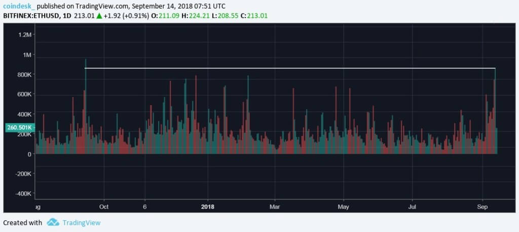 The trading volume on the Ethereum rose to annual maximum. When you start to grow the course?