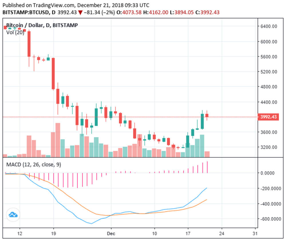 on December 17, just four days price has increased from 3181 to $ 4073, on all major exchanges main cryptocurrency has risen by 28 per cent. However, BTC still dropping for a longer period of time — 30 days ago, it cost 4400 dolla...