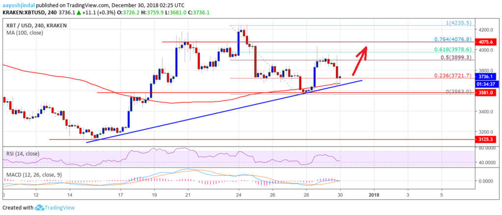 Bitcoin is still at the local uptrend, which gives us strong hope for the growth of cryptocurrencies in the first days of 2019. Over the weekend, the coin began to fall sharply, but the downward movement was stopped by the line of...
