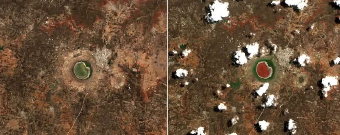 Why the meteorite lake in India drastically changed its color?