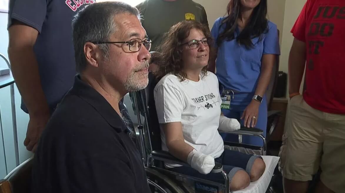 American lost his arms and legs after she licked the dog