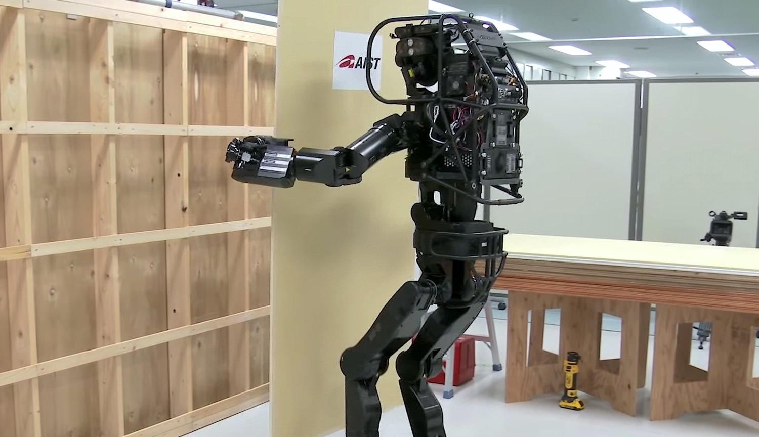 Video: two-legged robot Builder HRP-5P self-secures Board to the wall