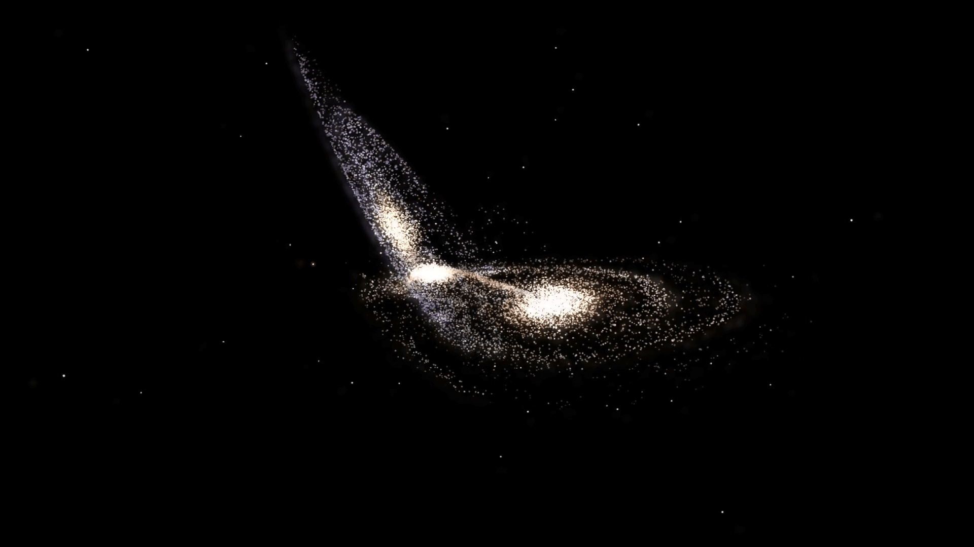 looks like a collision of three galaxies In an infinitely expanding lives of untold number of galaxies. Woven of dust and gas, and filled with celestial bodies, these amazing space travelers face each other. This is due to the gra...